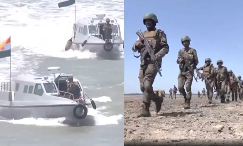 भारतीय सेना ने एम्फीबियस ऑपरेशन यानी जल और थल दोनों का भी अभ्यास। इस दौरान जमीन और पानी दोनों मोर्चों पर दुश्मन पर कब्जा जमाने की रणनीति दिखाई गई। सेना के इस अभ्यास और ताकत प्रदर्शन ने यह साबित किया कि ऑपरेशन सिंदूर के दौरान सेना ने क्रीक एरिया में जमीन और पानी दोनों जगह अपना दबदबा कायम रखा।