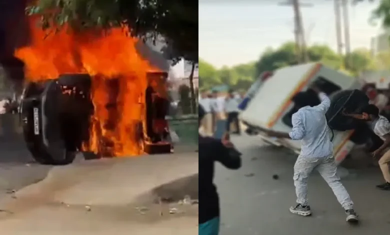 नोएडा में सड़क पर उतरे कंपनी के कर्मचारी, सैलरी बढ़ाने की मांग को लेकर हिंसक प्रदर्शन, कई गाड़ियों में तोड़फोड़ के बाद लगाई आग