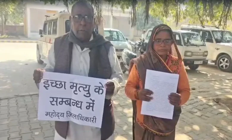 हाथ में इच्छा मृत्यु का पोस्टर, आंखों में आंसू… लेखपाल बेटे से परेशान बुजुर्ग पति-पत्नी DM ऑफिस पहुंचे, जानें पूरा माजरा